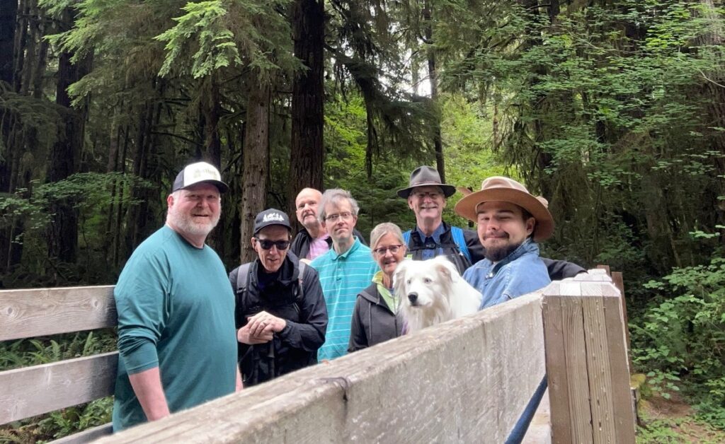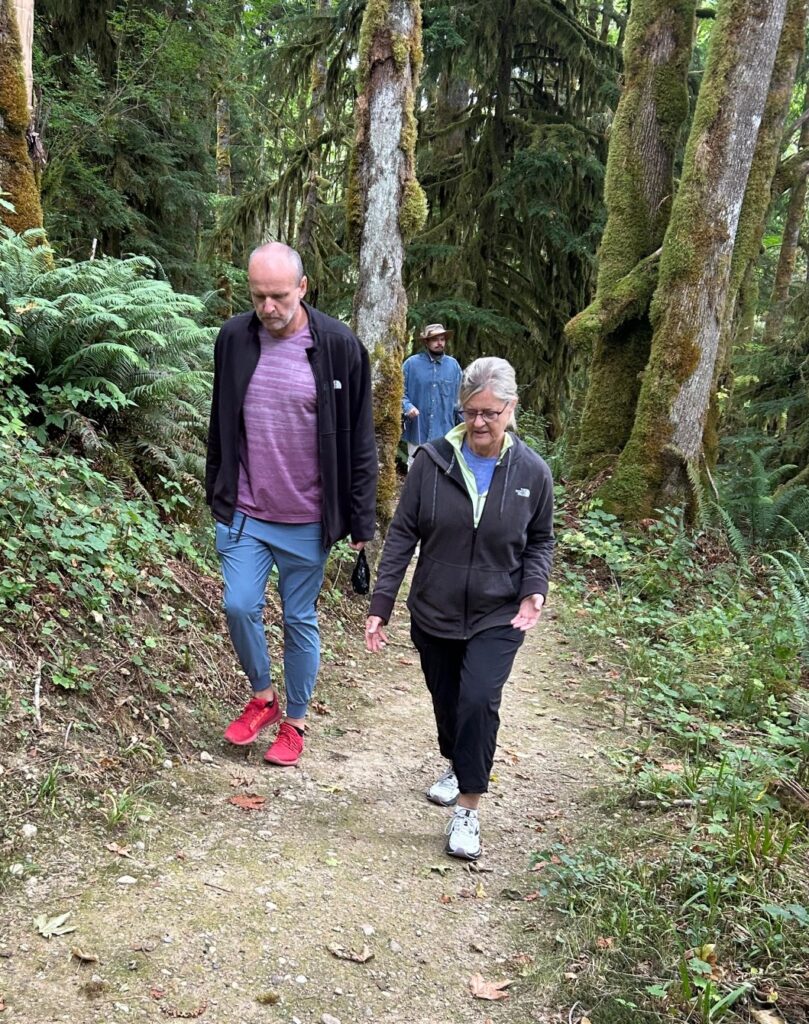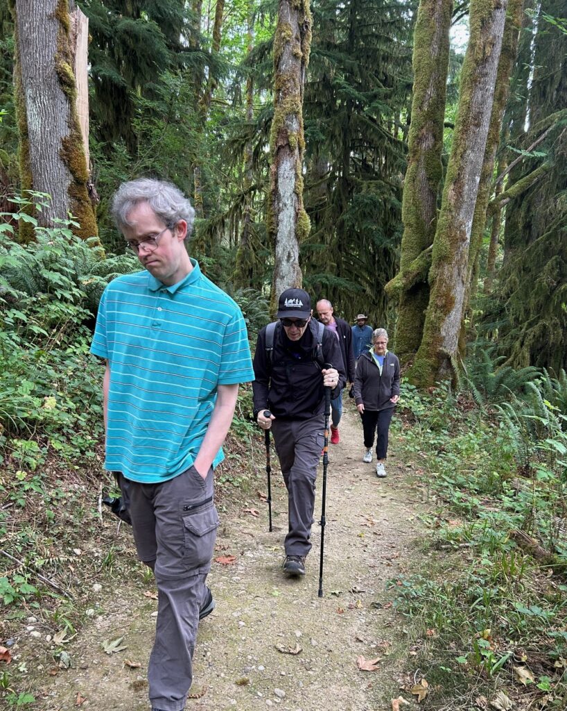 7 friends took time out of the busy summer weekends to walk 4 miles soaking up good energy you can only get from being the dense PNW fern and moss-covered forests with your Parkinsons friends. We saw a lot of moss but not so much of the lake. The trail went around most of the perimeter and we could see it through the forests but never got near the edge. We did happen to see a kayaker on the water and caught a glimpse of a snake. Mosquitoes were the most prevalent species around, unfortunately. Besides that, it a lovely spot in rural Washington. 4 of us lunched at the Carnation Cafe before heading home.