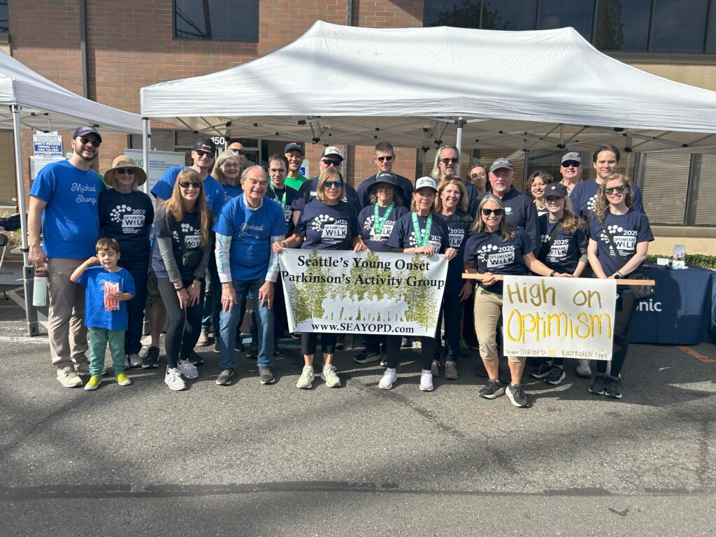 The sun shined on us in more ways than one. 33 people in the SEAYOPD family joined together to raise just over $37,000 for the APDA NW Chapter. I know of roughly $8,000 in additional donations promised that have yet to come in. 9 team members raised $1,000 or more receiving a coveted Circle of Optimism Award. We raised funds from friends and loved ones near and far. We overcame our symptoms and didn't quit! We will keep fighting until there's a cure, Making Friends and Dopamine along the way!